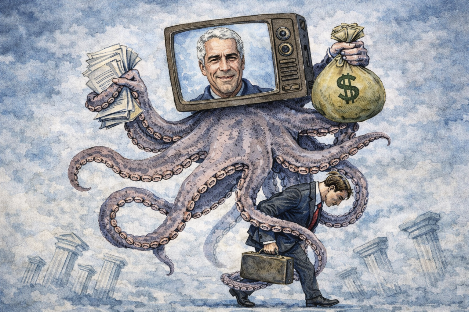 لم تكن رياح شباط 2026، وهي تعصف بأرشيف “جيفري إبستين” لتقذفه في وجوهنا، مجرد تقلب مناخي في سماء الفضائح المعتادة؛ بل كانت إعصاراً يضرب ما تبقى من بنية تحتية للأخلاق الغربية، بعد أن رأينا في الأمس القريب قيام جيش غربيّ بالاستحواذ على قنوات البث الإعلاميّ في الضفة الغربية في فلسطين، وقيامه بإغراقها على مدار الساعة بمواد جنسانيّة تغتصب مخيال الطفولة والإنسانيّة بلا أي وازع – وبقرارْ مؤسّسيّ. ها نحن اليوم نجد بين أيدينا ملايين الصفحات الغارقة في حبر البيروقراطية وسواد الضمائر، في حدثٍ يتجاوز كونه استحقاقًا قانونياً يمكن تأطيره في قاعات المحاكم. إنه، وبدقة جراحية، “تقرير تشريح” لجثة ما كان يُسمى سابقاً بـالعقد الاجتماعي؛ هذه الأوراق ليست خريطة لعصابة مارقة شذّت عن القاعدة، بل هي المخطط الهندسيّ الحقيقي (Blueprints) للحوكمة الموازية التي تدير العالم من خلف الستار، تلك المنظومة الخفية التي حولت مفهوم “سيادة القانون” إلى فلكلور بائس، ونكتة سمجة لا تضحك أحداً إلا السذج. نحن لا نحدق في فضيحة جنسية، بل نحدق في “شبكة الصرف الصحي” التي تجري تحت أساسات الدولة الحديثة، سيادة تعمل في قلب المؤسسات، لكنها تتعالى بوقاحة فوق أسوارها.